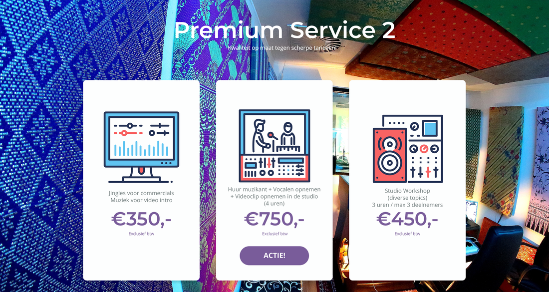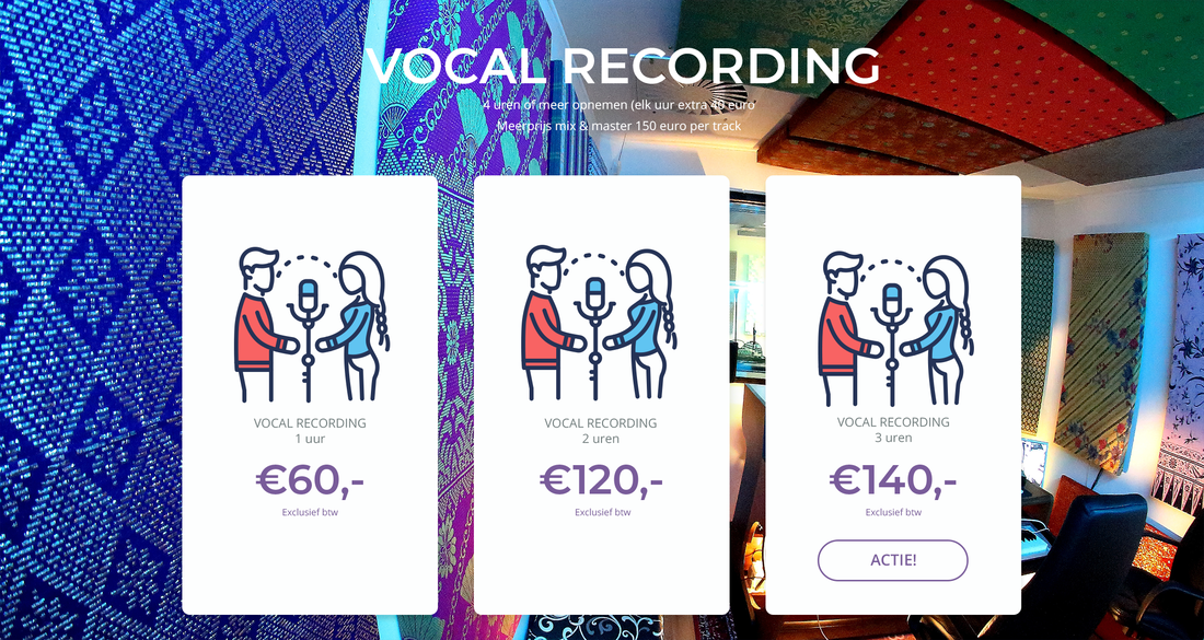 Professionele opnames voor zang en instrumenten, met de nieuwste apparatuur en ervaren geluidstechnici.